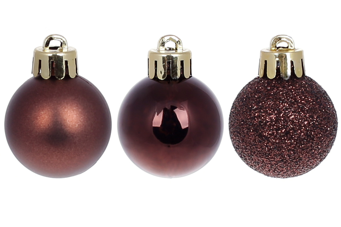 Набор ёлочных шаров 3см, цвет - темный шоколад, 24шт: глянец и глиттер - по 10шт, матовый - 4шт